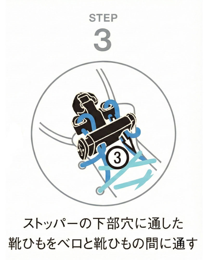ストッパーの上部穴に靴ひもを通す。