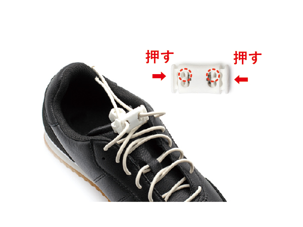 ストッパーの上部穴に靴ひもを通す。