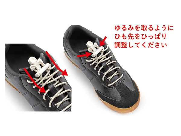靴ひもの締め具合を調整する。